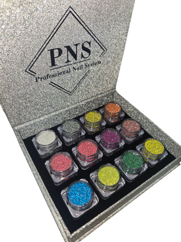 Alle 12 kleuren glitters No. 37 t/m 48 Soort: Mix glitter van verschillende maten chameleon glitters