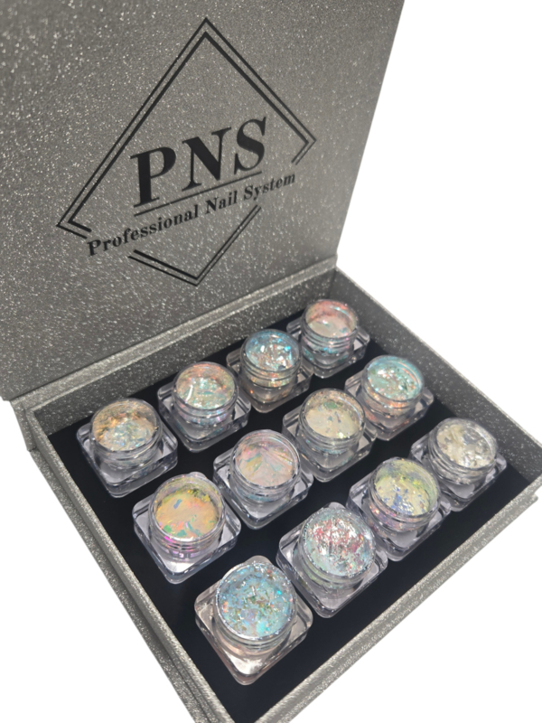 PNS Flakes 13 t/m 24 in een verzamel boxAlle 12 kleuren flakes No. 13 t/m 24